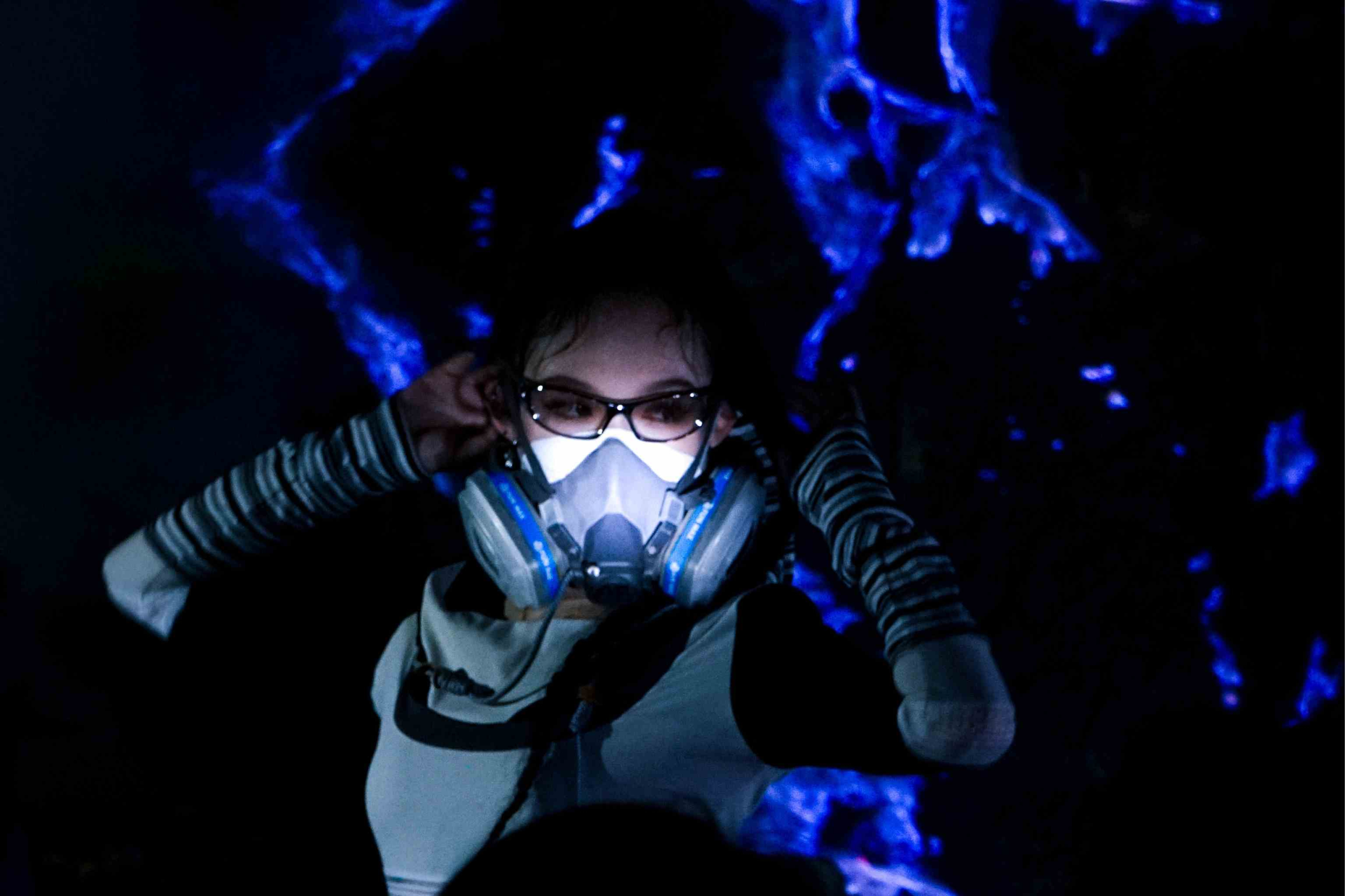 - Wear a gas mask to avoid inhaling toxic sulfur fumes.